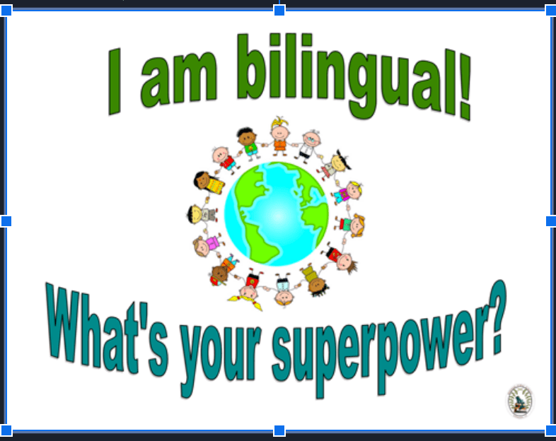 - Have students create posters that state, “Bilingualism is my superpower. What’s yours?” to hang around the school. Make sure that all students who speak a LOTE are able to participate and that the posters are made in all the languages represented at your school. Do not forget low incidence languages. All bilingualism and multilingualism count!