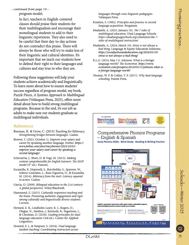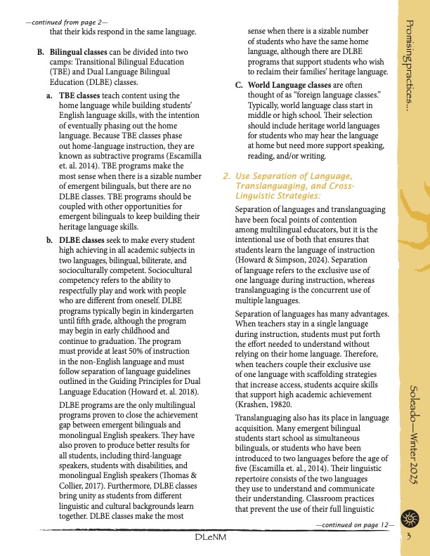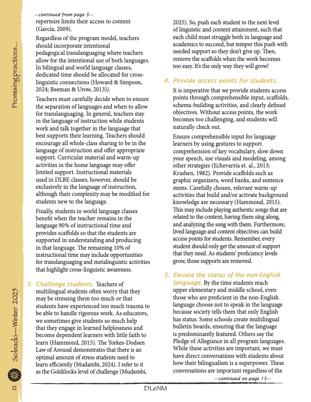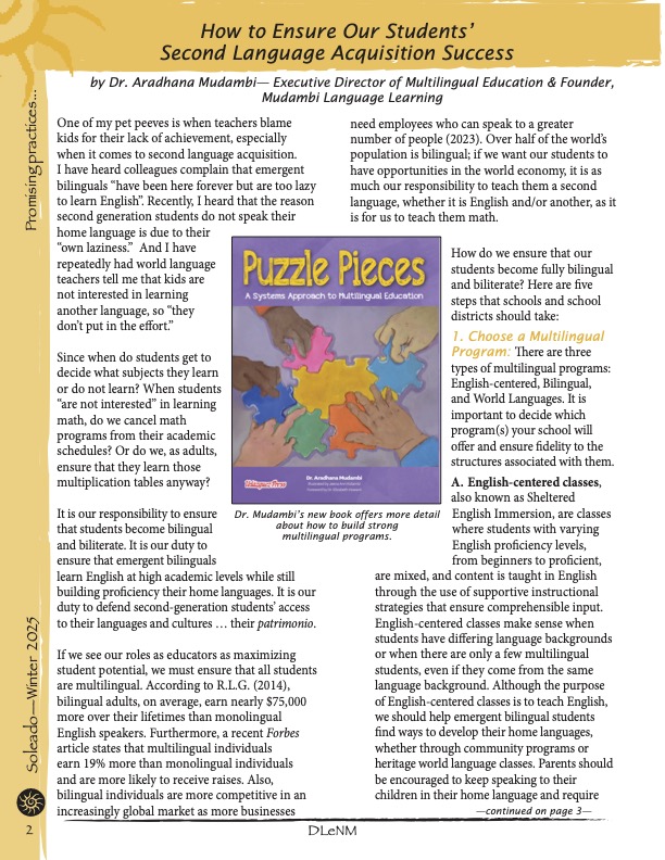 Hi, everyone. Today, I would like to share an article I wrote for Soleado that discusses how to ensure our students are successful learning their second language regardless of which program they are in. Thank you to DLENM for publishing the article.
